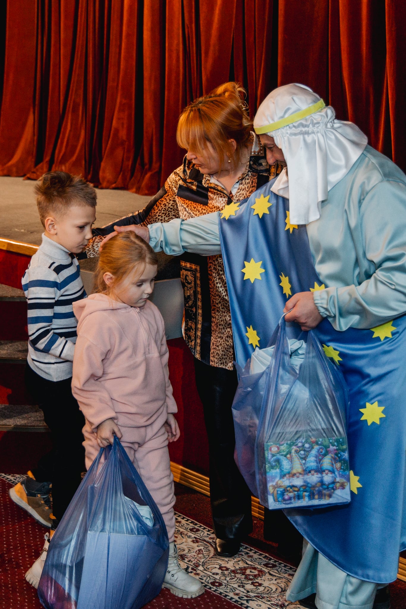 Після завершення вистави учасникам заходу вручили подарунки від благодійників. Солодкі пакунки для малечі підготували волонтери «Української команди» в Тернопільській області.