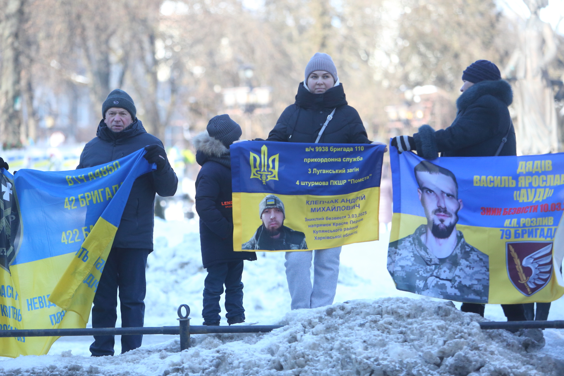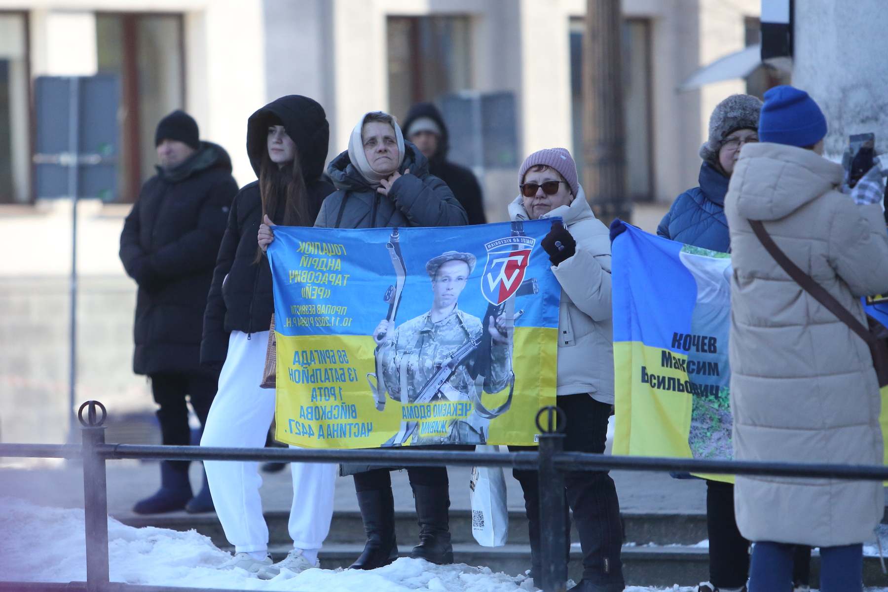 Серед учасників акції — Світлана Булава. Жінка прийшла з фотографією свого чоловіка Леоніда Булави, який перебуває в російському полоні вже майже чотири роки.
