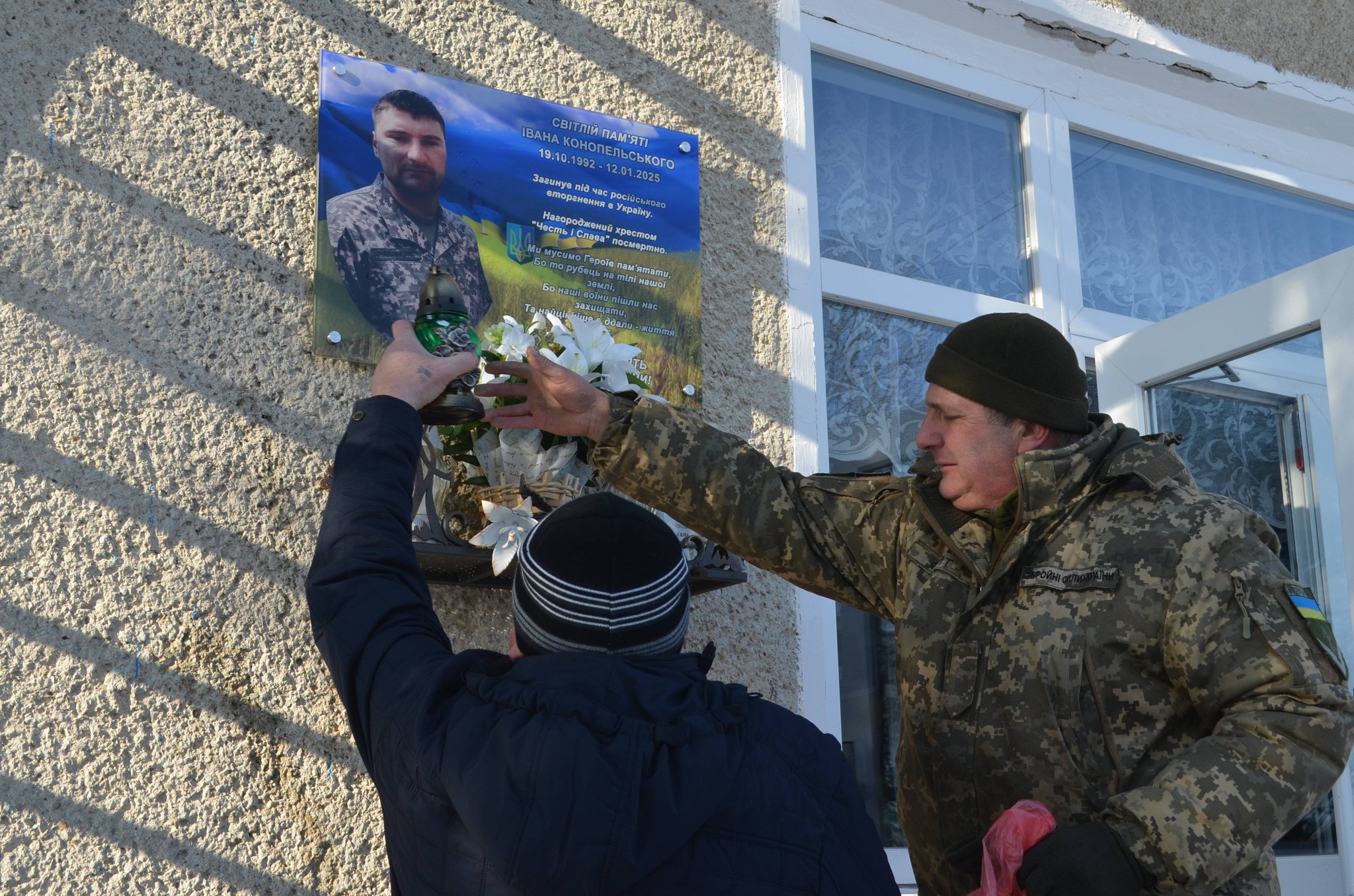 Всечесний отець провів поминальний молебень та освятив пам’ятний знак. Почесне право відкрити дошку було надане братам Героя.