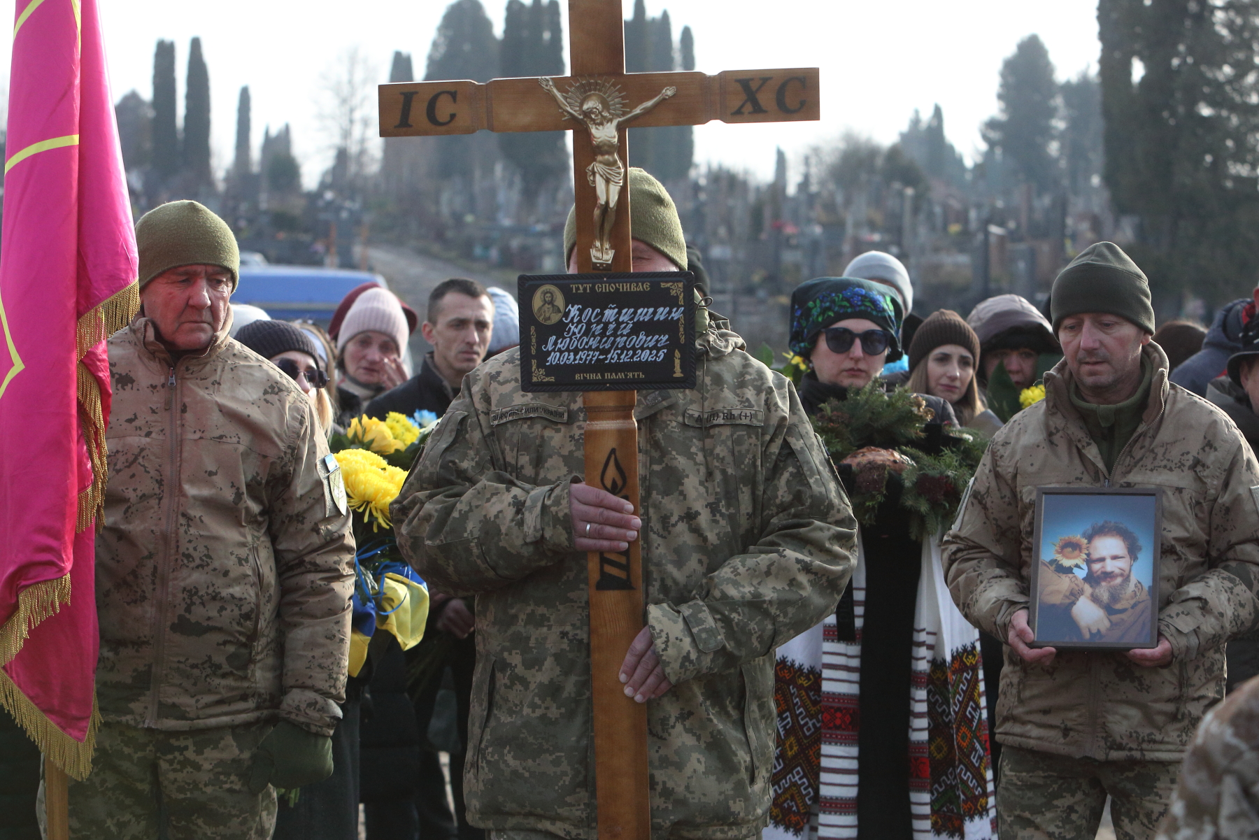 Сотні людей сьогодні провели в останню земну дорогу воїна, фотографа та письменника Юрія Костишина на псевдо «Кіт Характерник».