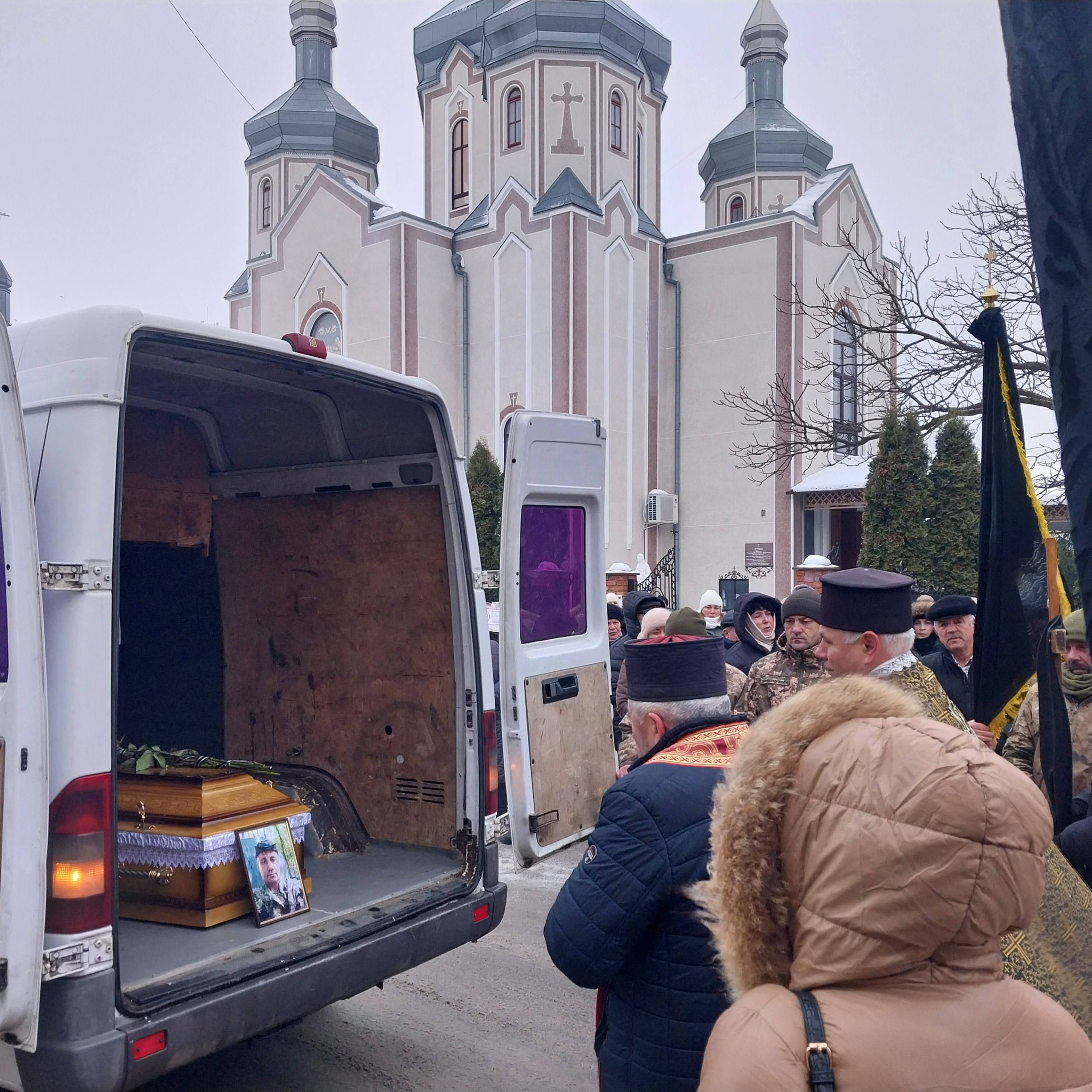 Жителі міста в жалобі, з прапорами вийшли на зустріч траурного кортежу з тілом воїна Руслана Бевзюка, жителя села Окопи Мельнице-Подільської громади.