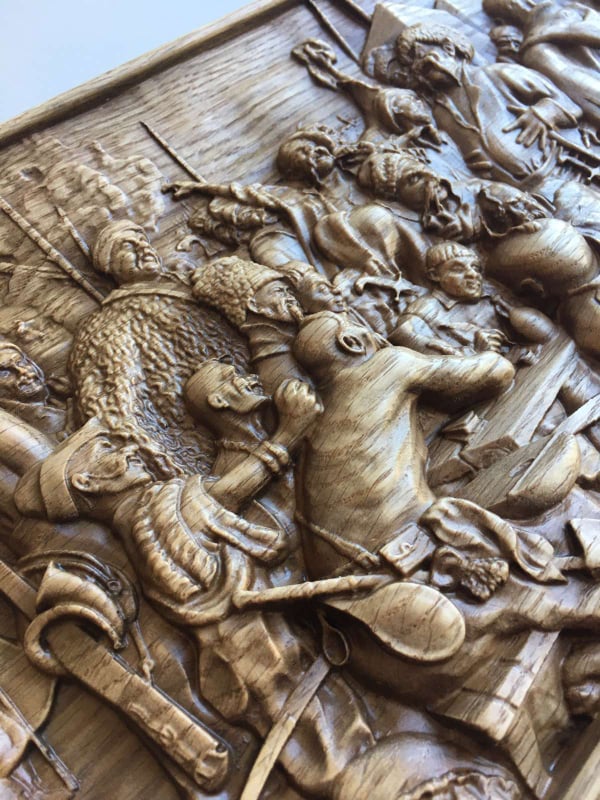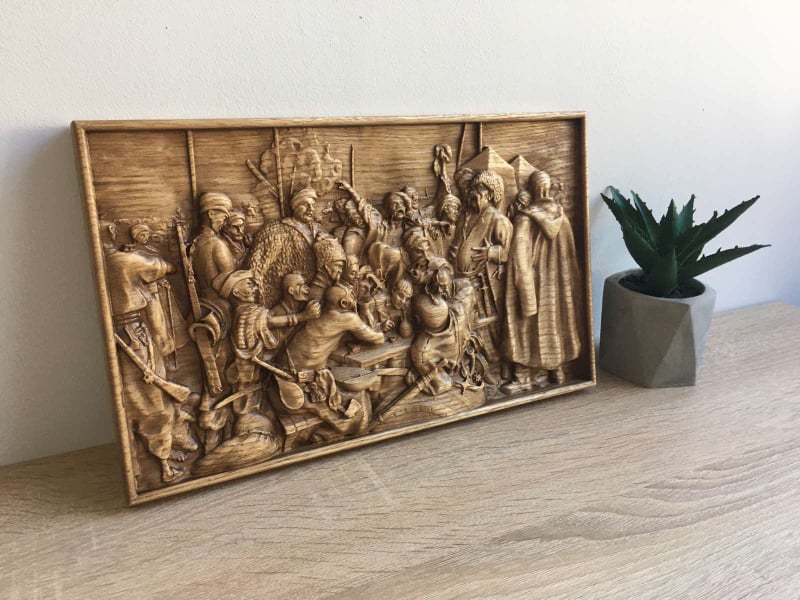 Картина, яку відтворив в дереві Тарас Малиновський – відома робота українського художника Іллі Рєпіна «Запорожці пишуть листа турецькому султанові». Чоловік каже, що це зображення здалося йому знаковим.