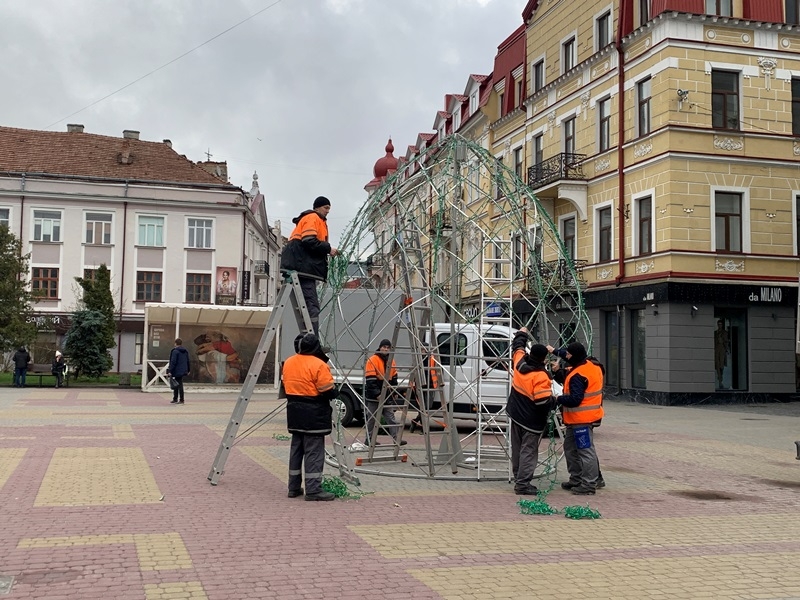 Її працівники комунальних служб оздоблюють святковою ілюмінацією.