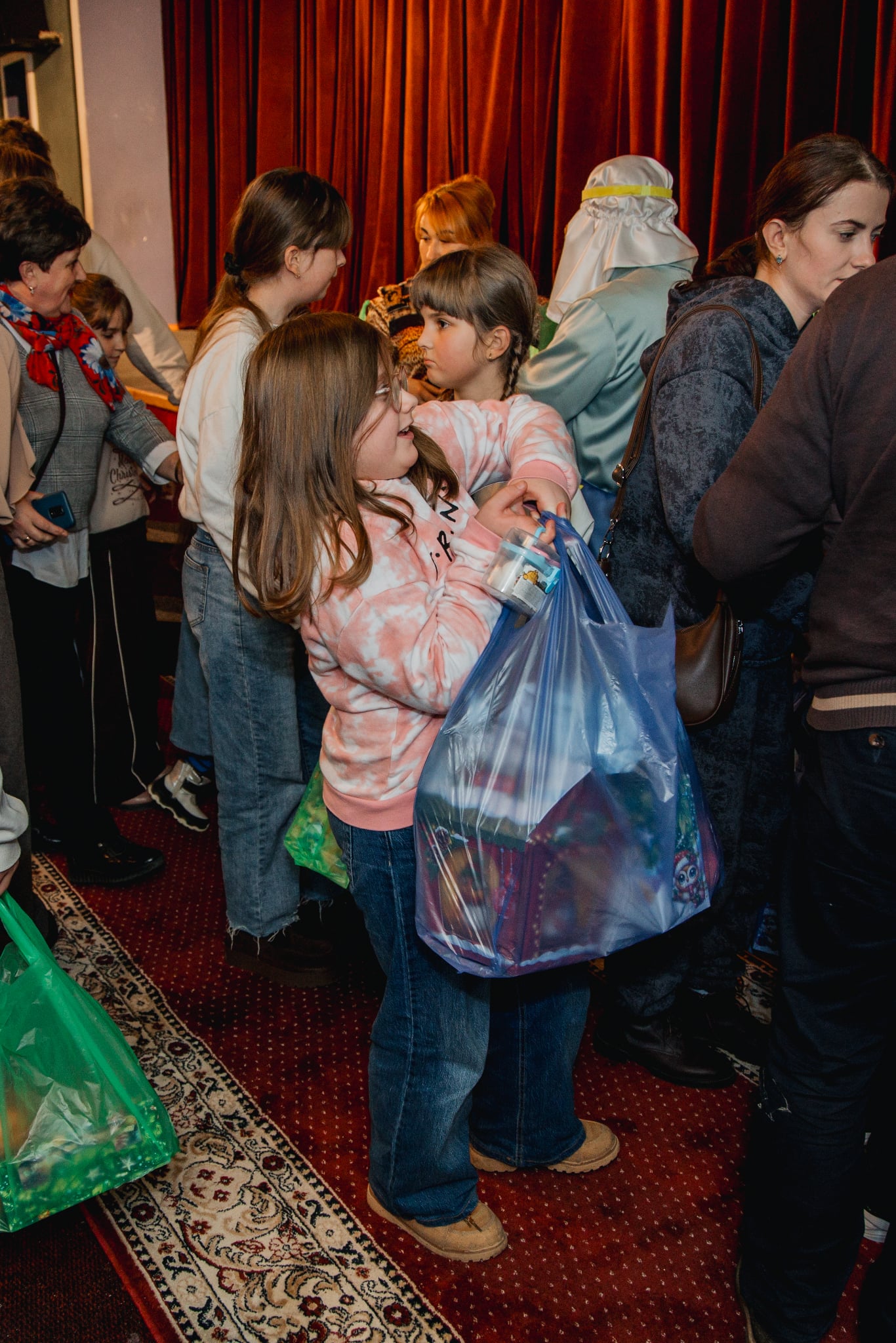 Після завершення вистави учасникам заходу вручили подарунки від благодійників. Солодкі пакунки для малечі підготували волонтери «Української команди» в Тернопільській області.