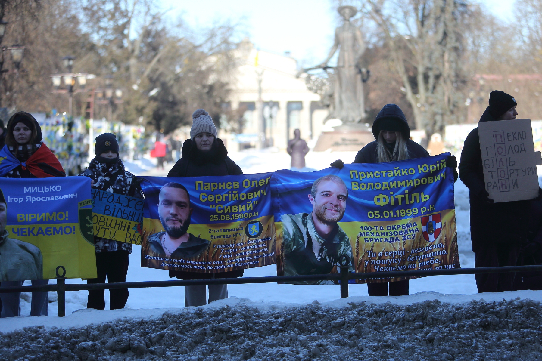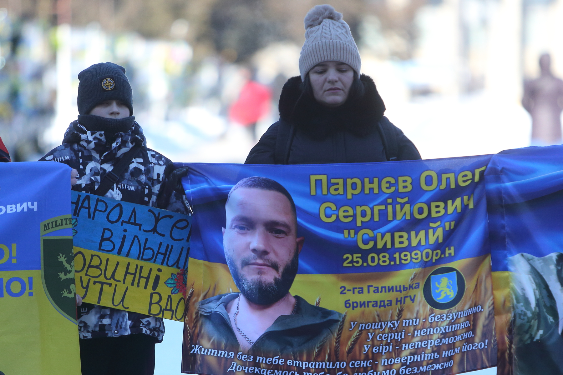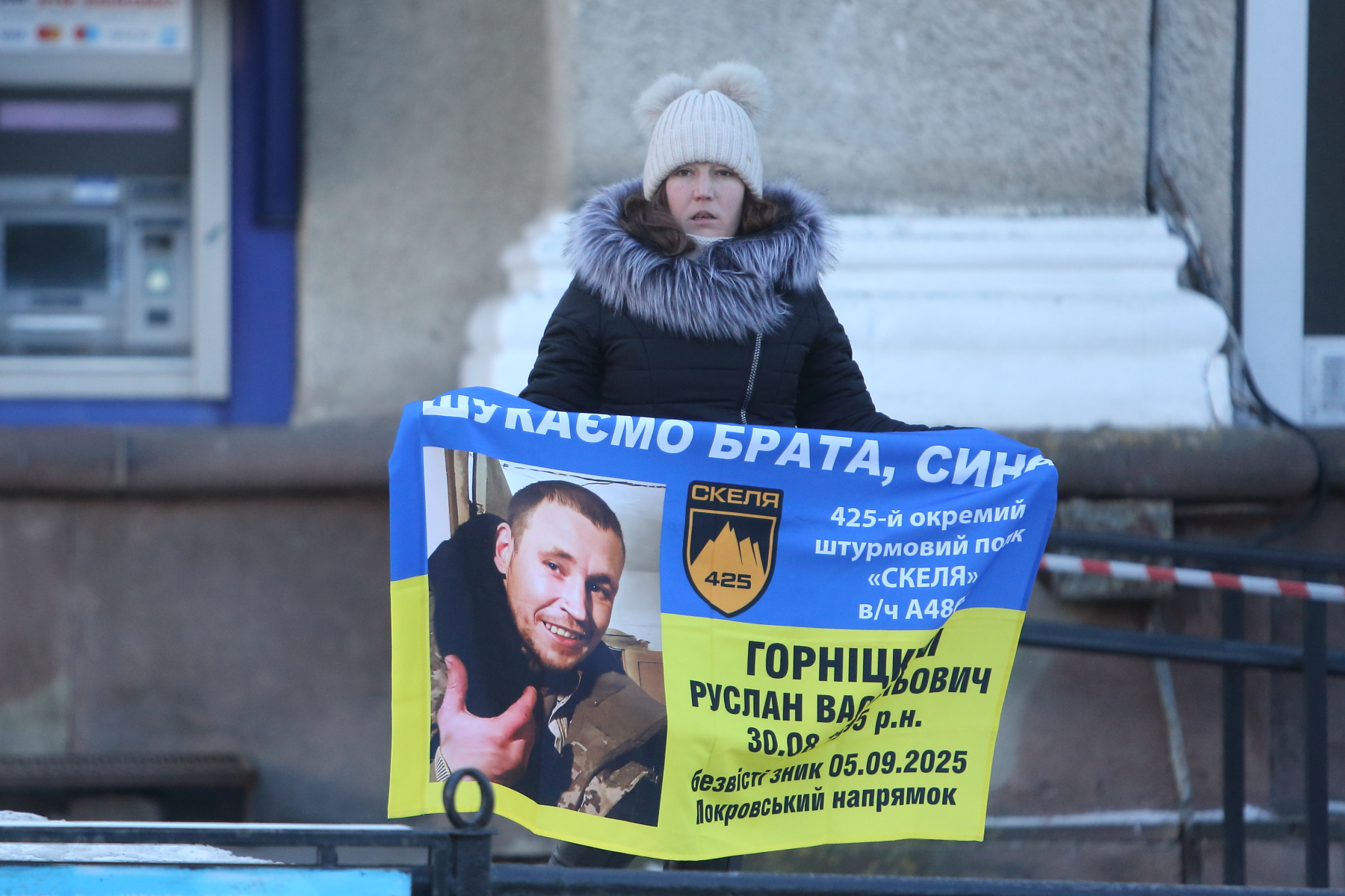 Серед учасників акції — Світлана Булава. Жінка прийшла з фотографією свого чоловіка Леоніда Булави, який перебуває в російському полоні вже майже чотири роки.