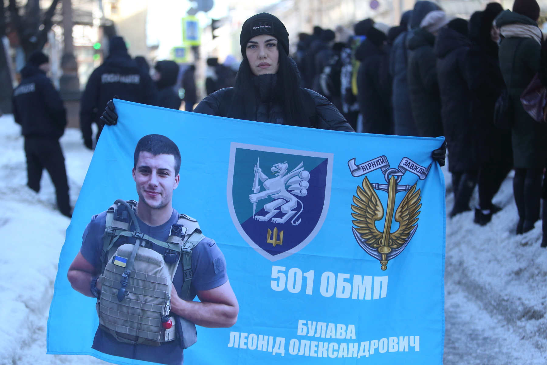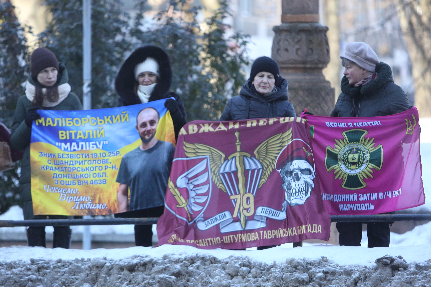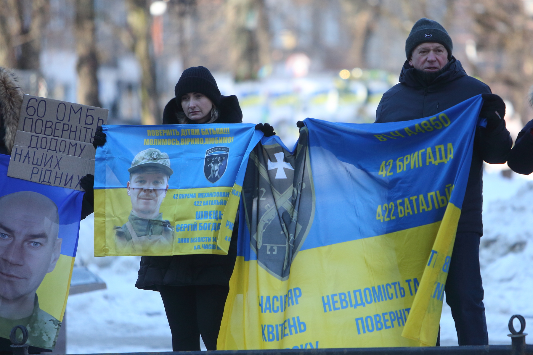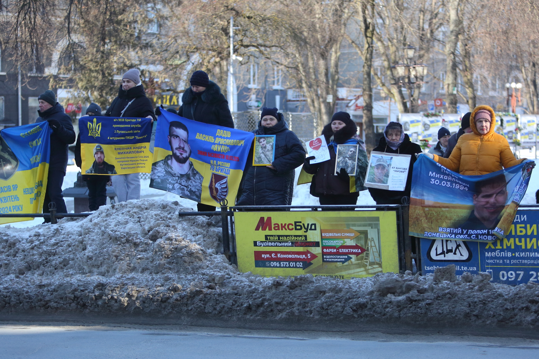 Серед учасників акції — Світлана Булава. Жінка прийшла з фотографією свого чоловіка Леоніда Булави, який перебуває в російському полоні вже майже чотири роки.