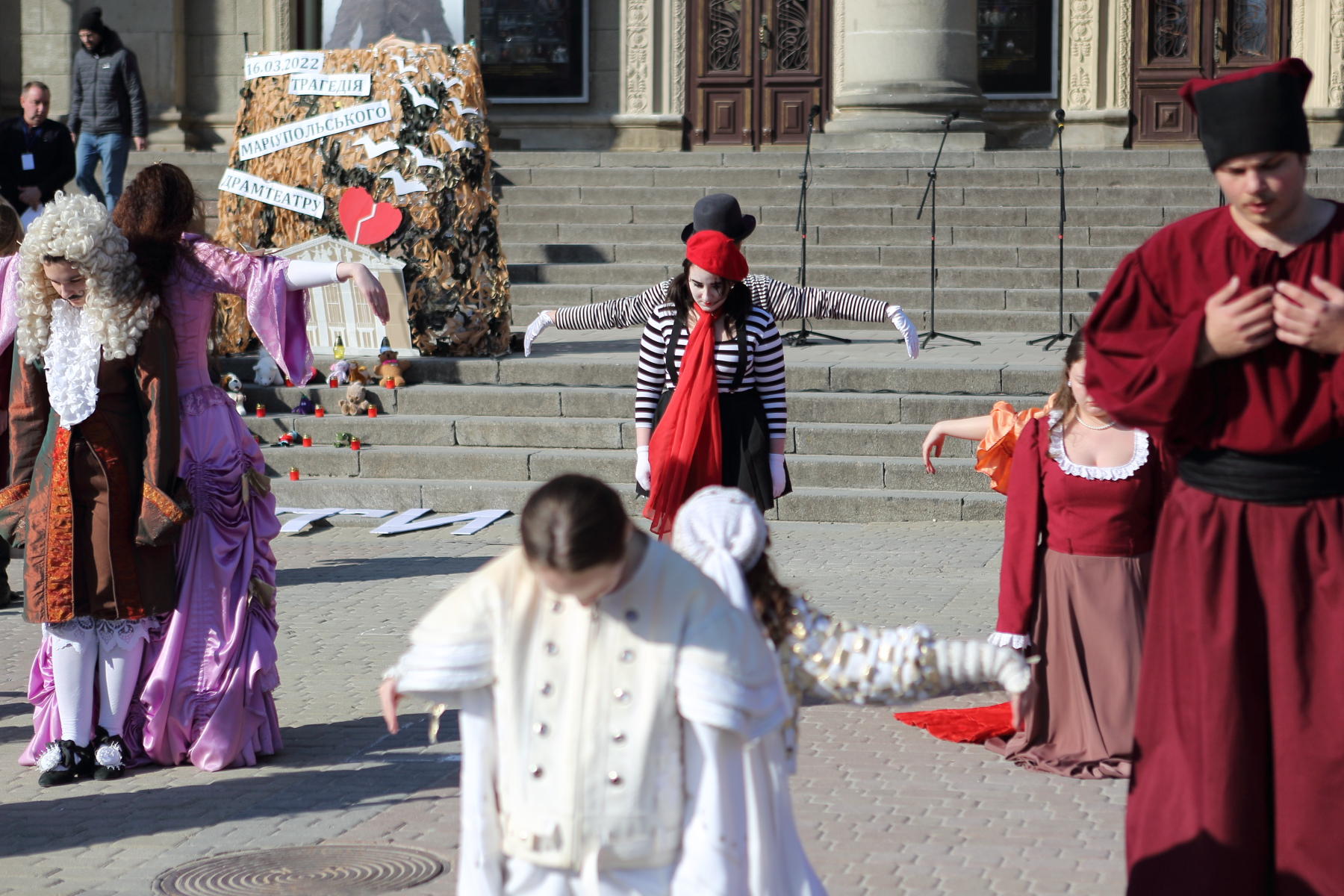 Аби вшанувати пам'ять жертв теракту у Маріуполі, в центрі Тернополя сьогодні організували театральний перформанс.