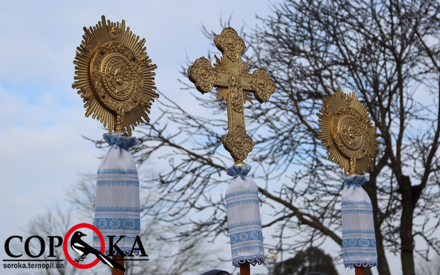 Через сильний мороз вода у кранах водосвятного баку замерзла. Проте, їх швидко відігріли будівельним феном.