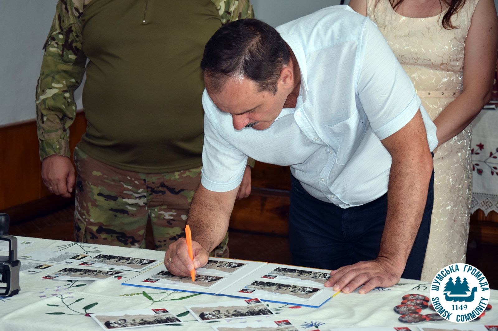– У заході взяла участь тернопільська художниця Наталія Басараб, яка реалізовує благодійний проєкт «Їхні очі дивляться в душу», впродовж якого планується намалювати тисячу портретів захисників. Протягом року майстриня малює бійців, яких зустрічає на вулицях, у реабілітаційних центрах і наприкінці зустрічі дарує кожному його портрет. У музеї Наталія Басараб вправно зобразила портрети захисників з Шумщини, які прийшли на захід, – розповіли у громаді.