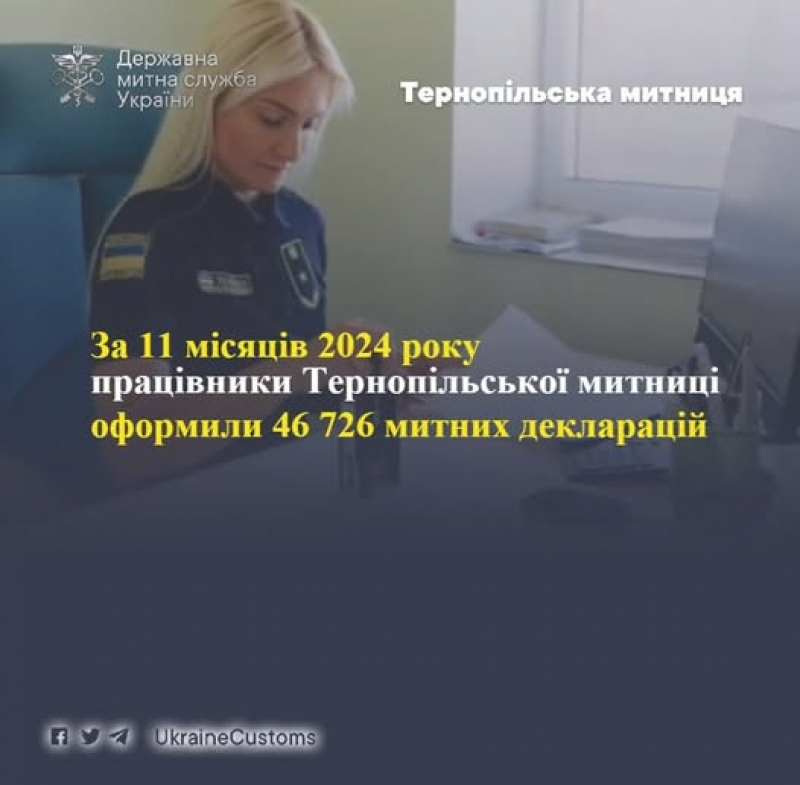 За 11 місяців 2024 року працівники Тернопільської митниці оформили 46 726 митних декларацій.