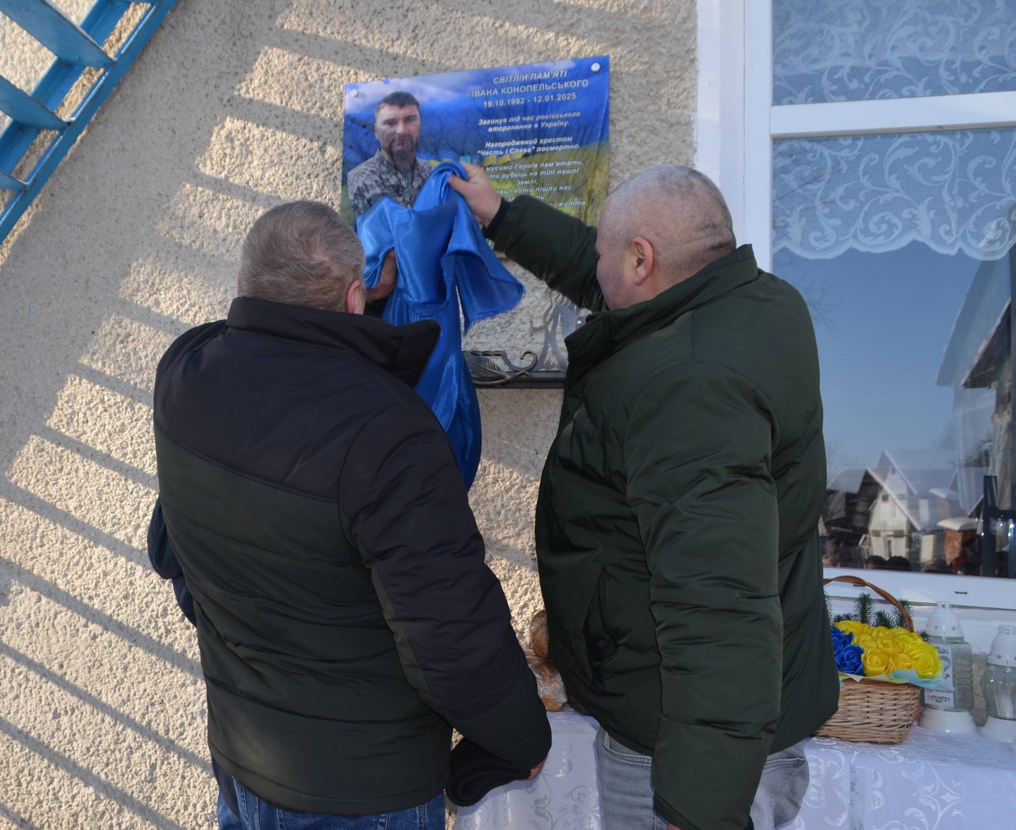 Всечесний отець провів поминальний молебень та освятив пам’ятний знак. Почесне право відкрити дошку було надане братам Героя.