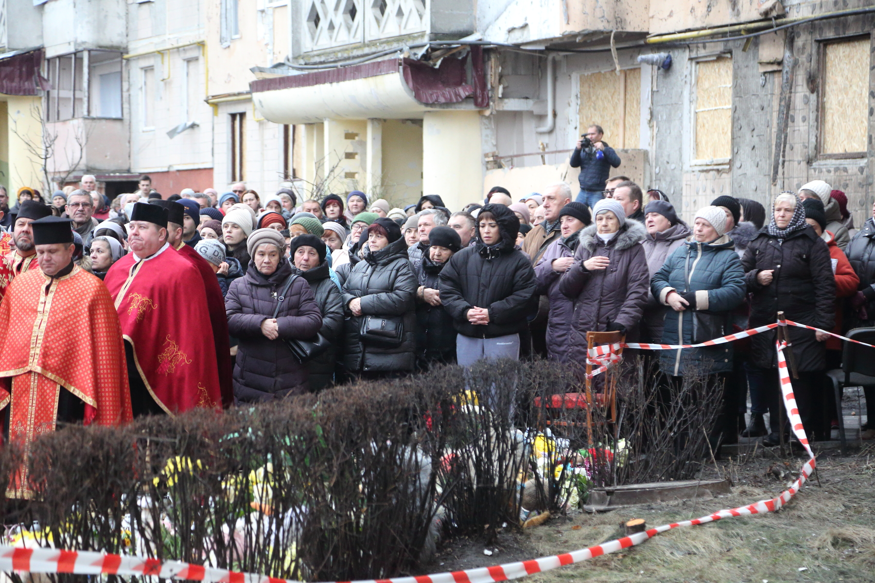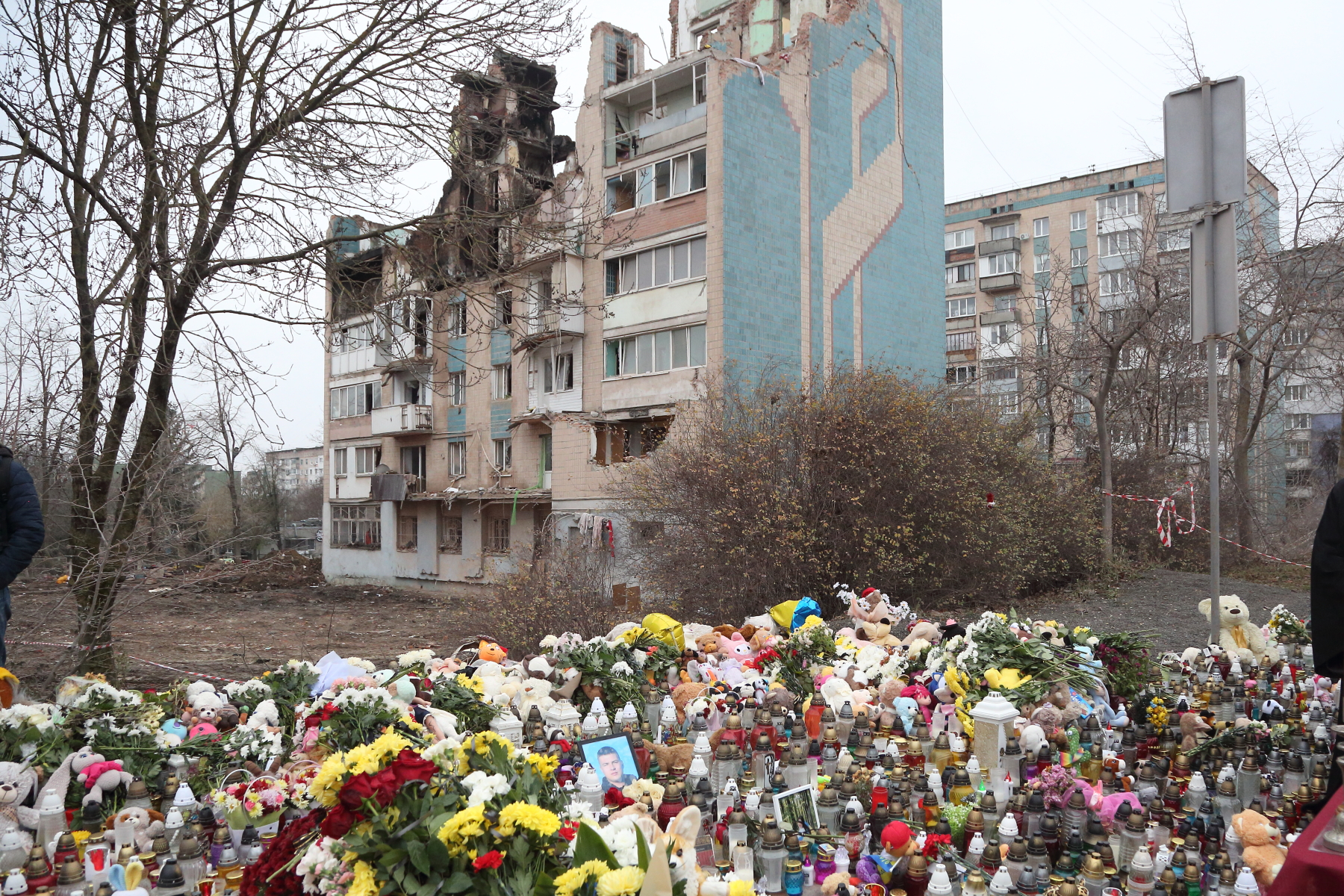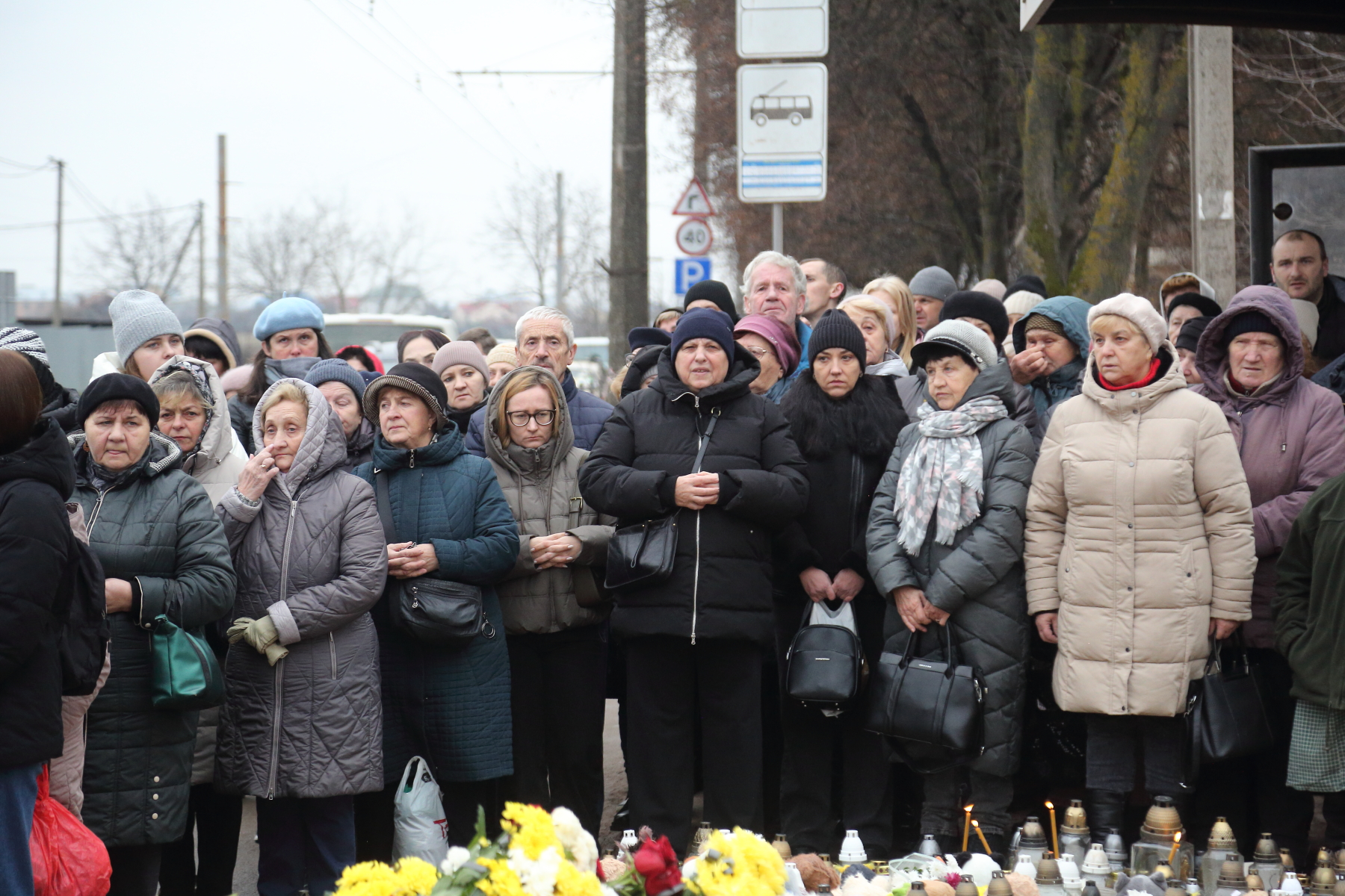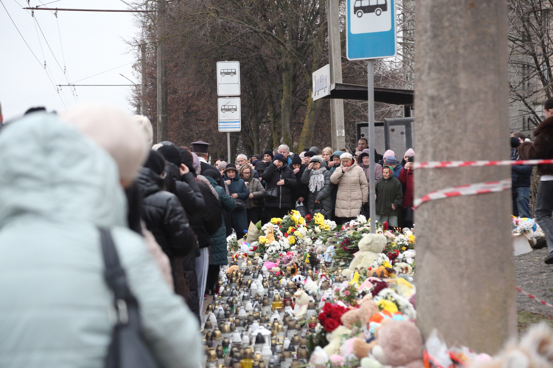 На місцях прильотів сьогодні зібралися десятки тернополян. Вони разом помолилися за загиблих. Люди продовжують нести свічки та іграшки.
