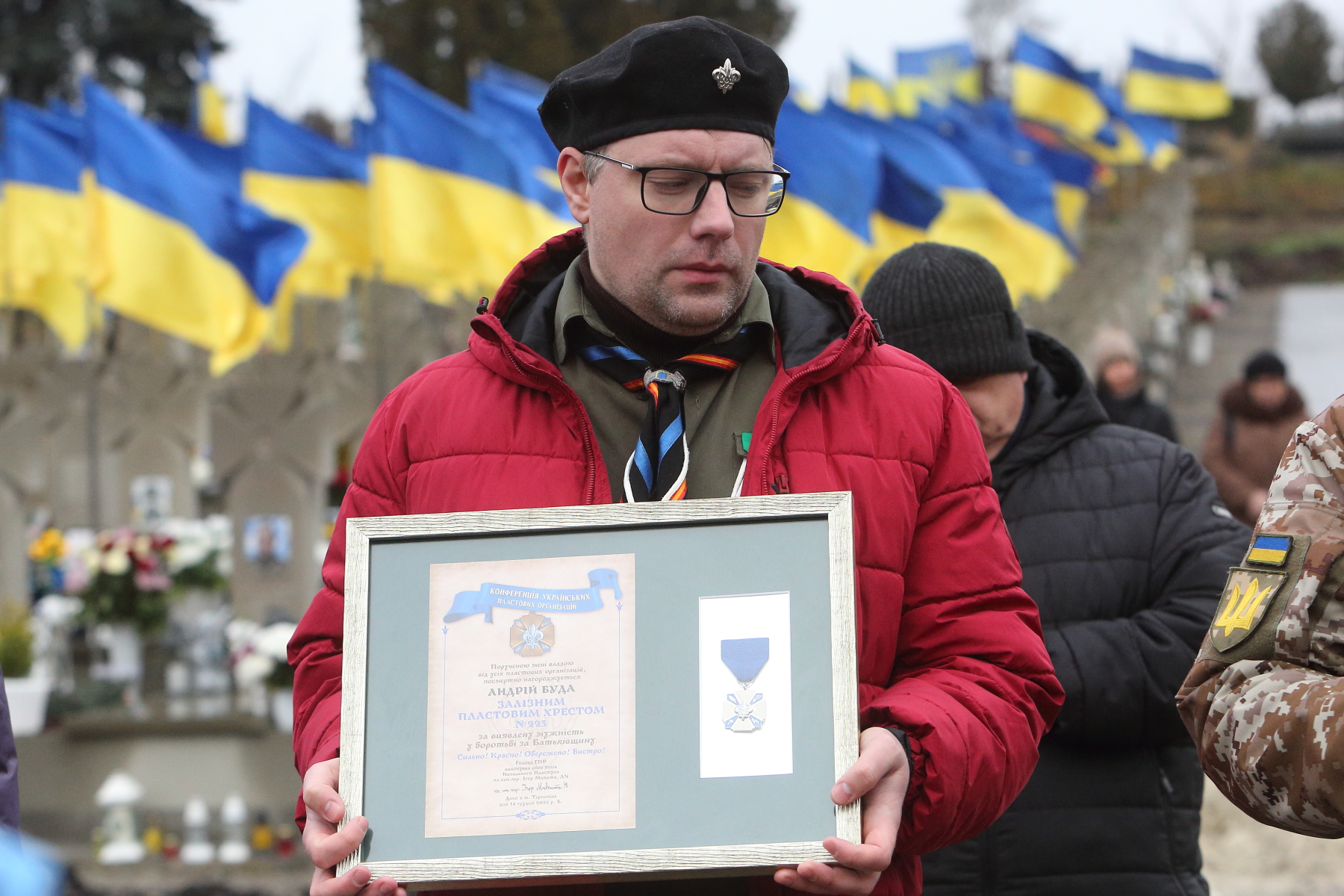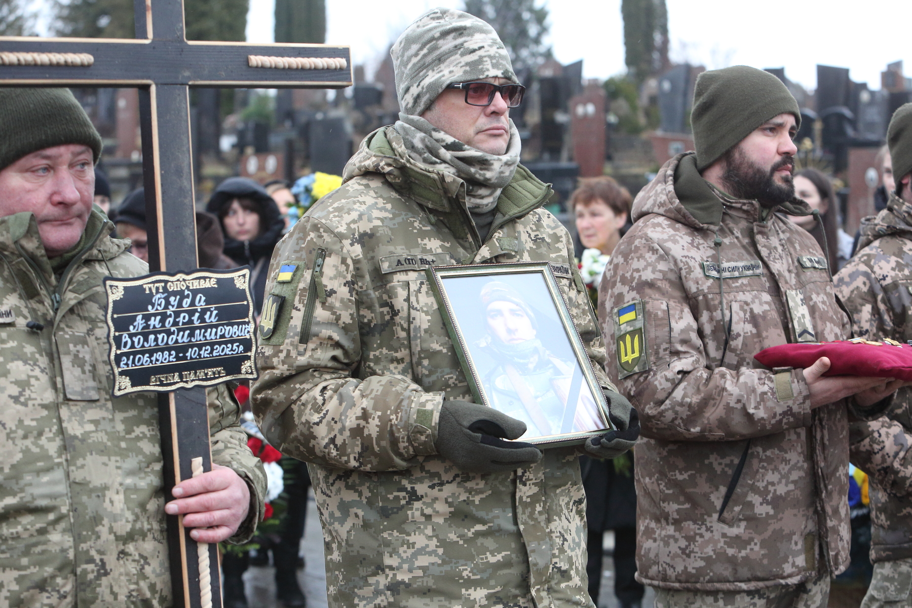 Учора, 14 грудня, у Тернополі провели останню земну дорогу пластуна та історика Андрія Буду, який загинув на війні. Чоловіку було 43 роки.