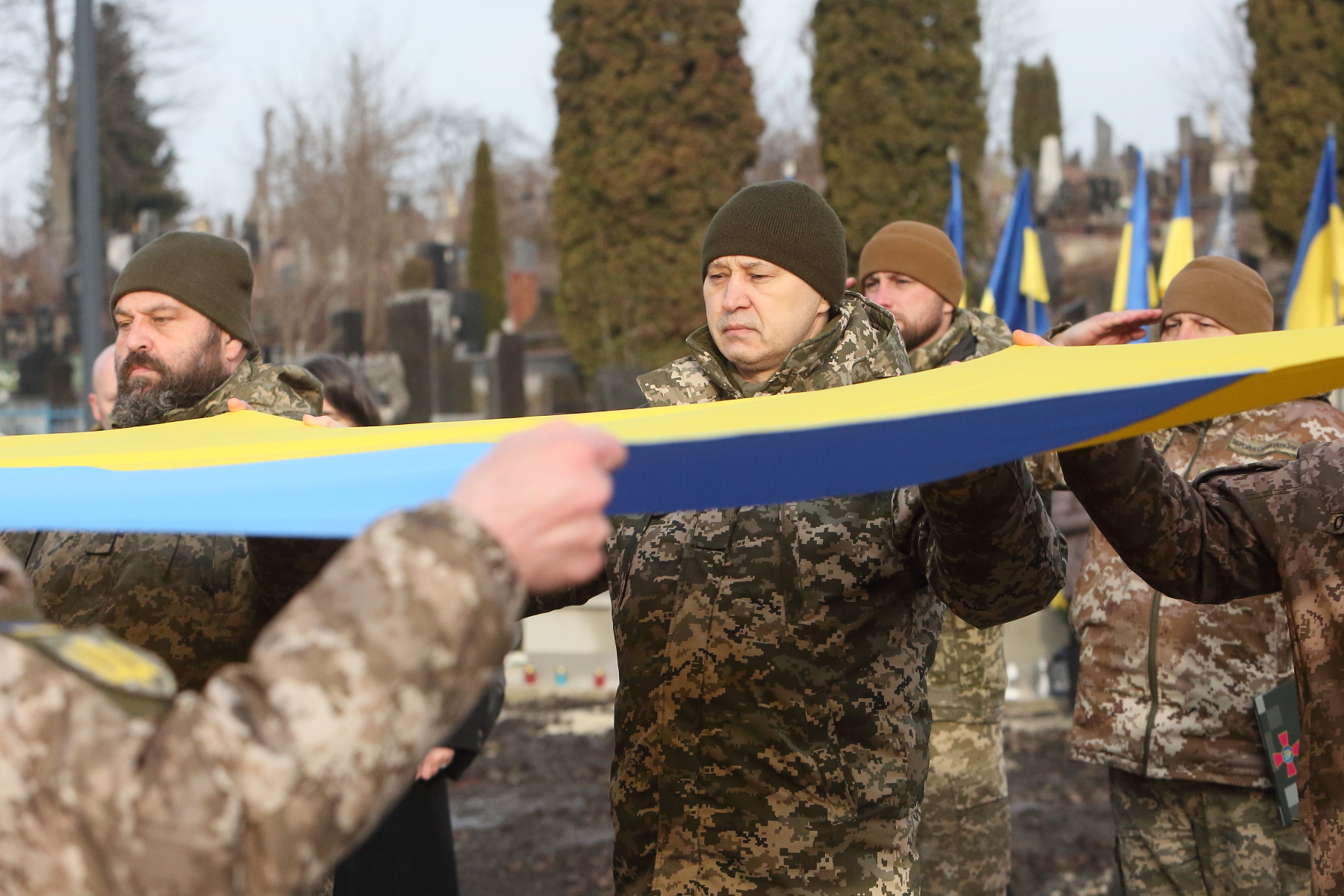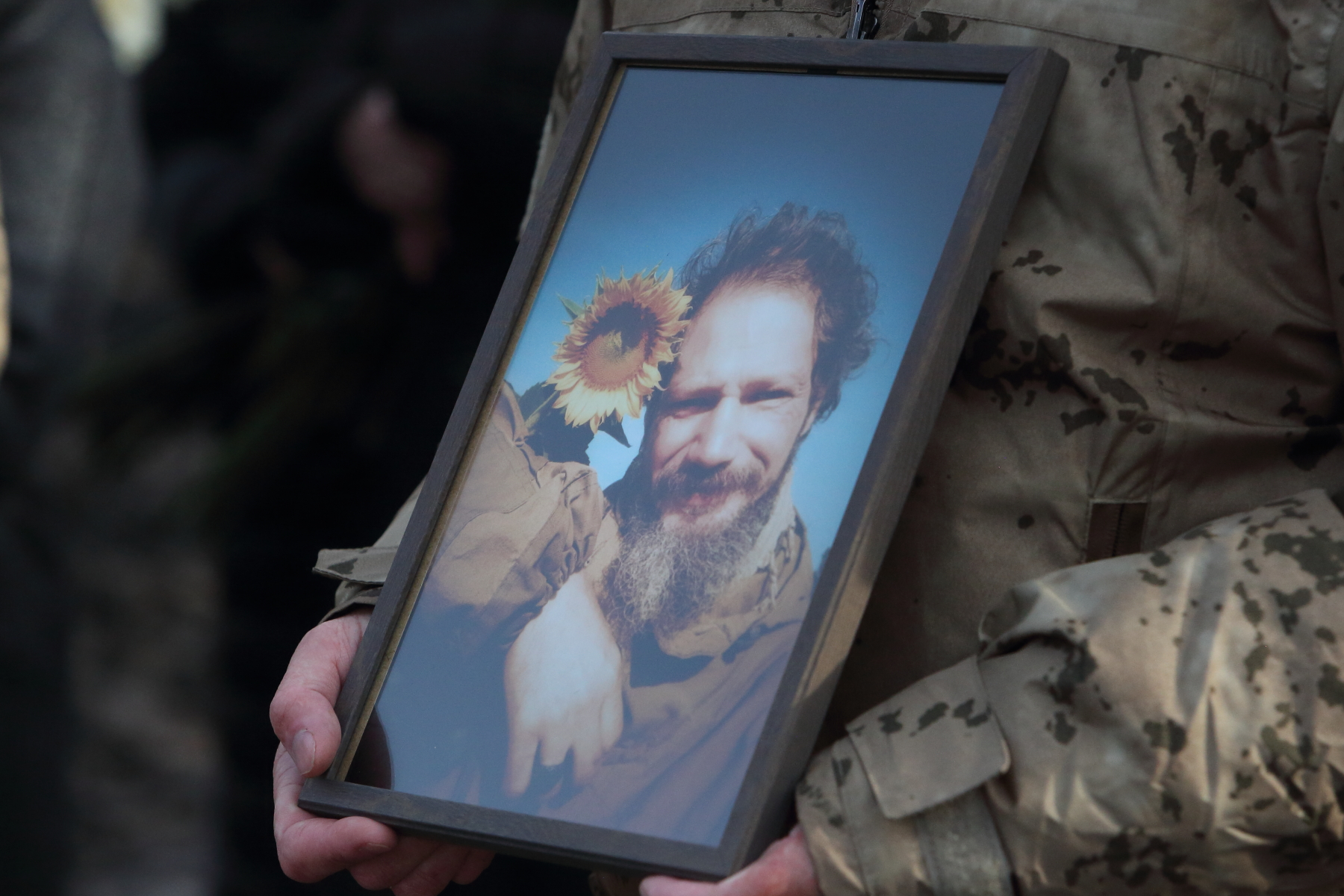 Сотні людей сьогодні провели в останню земну дорогу воїна, фотографа та письменника Юрія Костишина на псевдо «Кіт Характерник».
