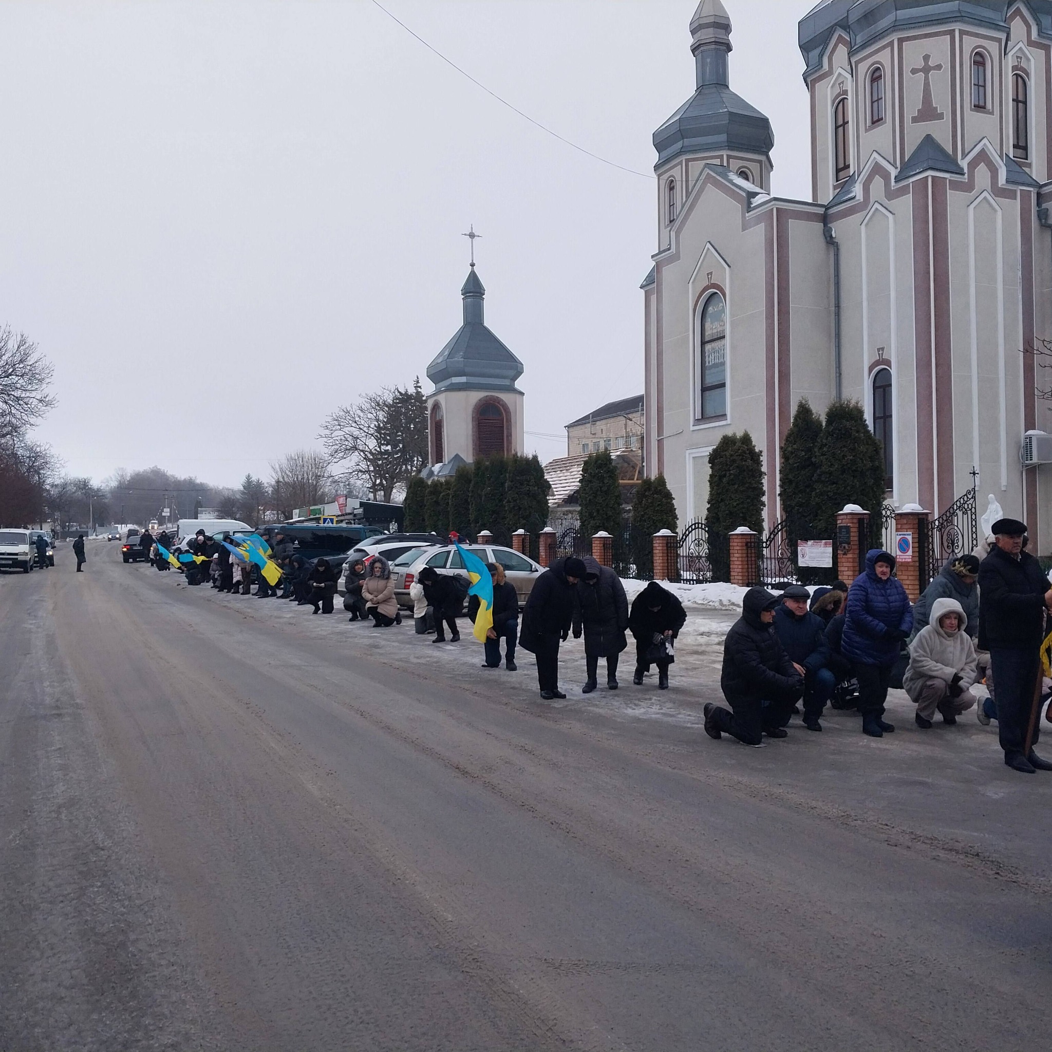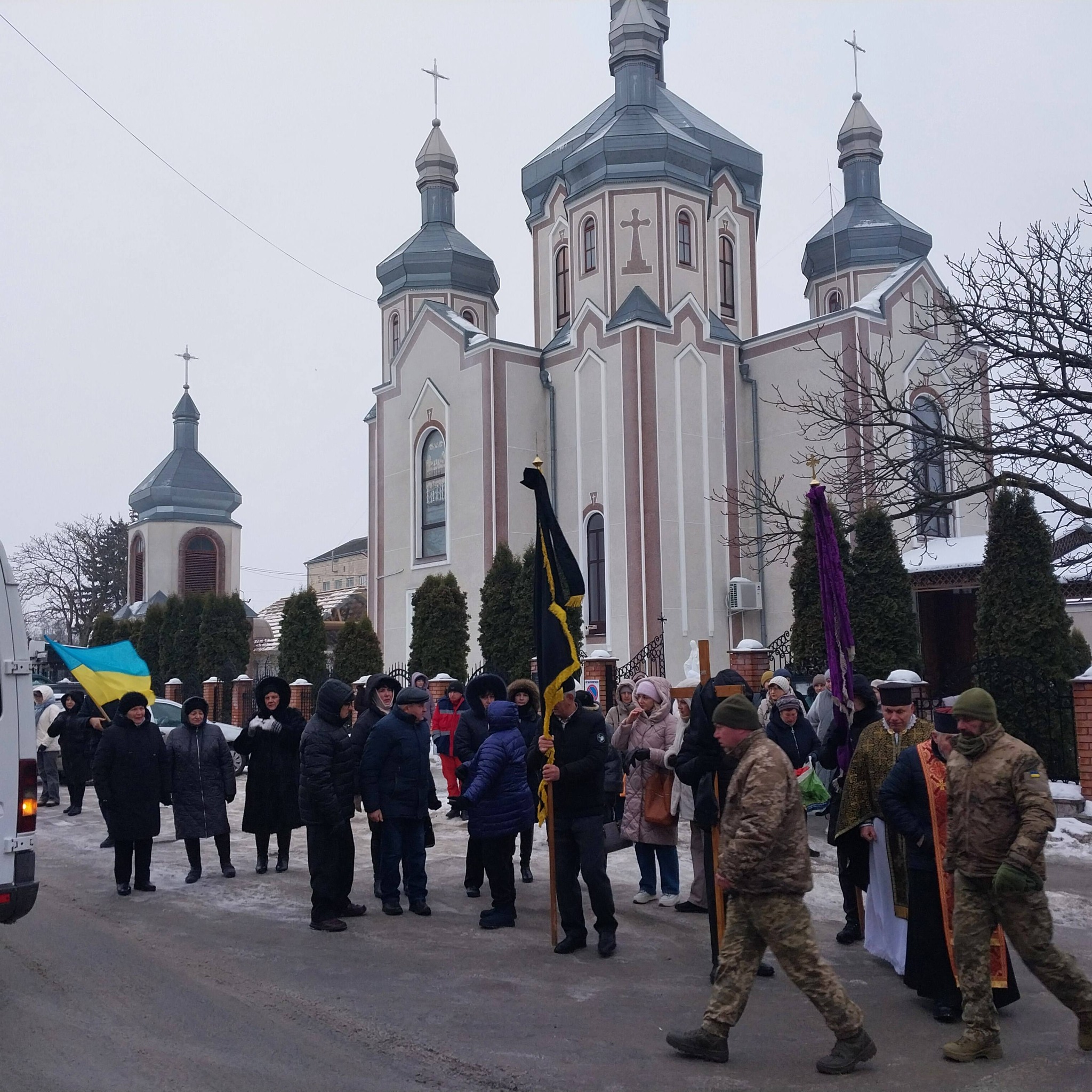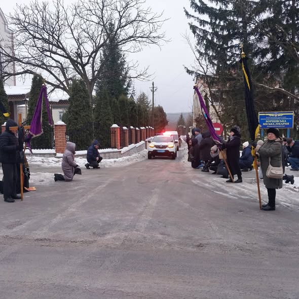 Жителі міста в жалобі, з прапорами вийшли на зустріч траурного кортежу з тілом воїна Руслана Бевзюка, жителя села Окопи Мельнице-Подільської громади.